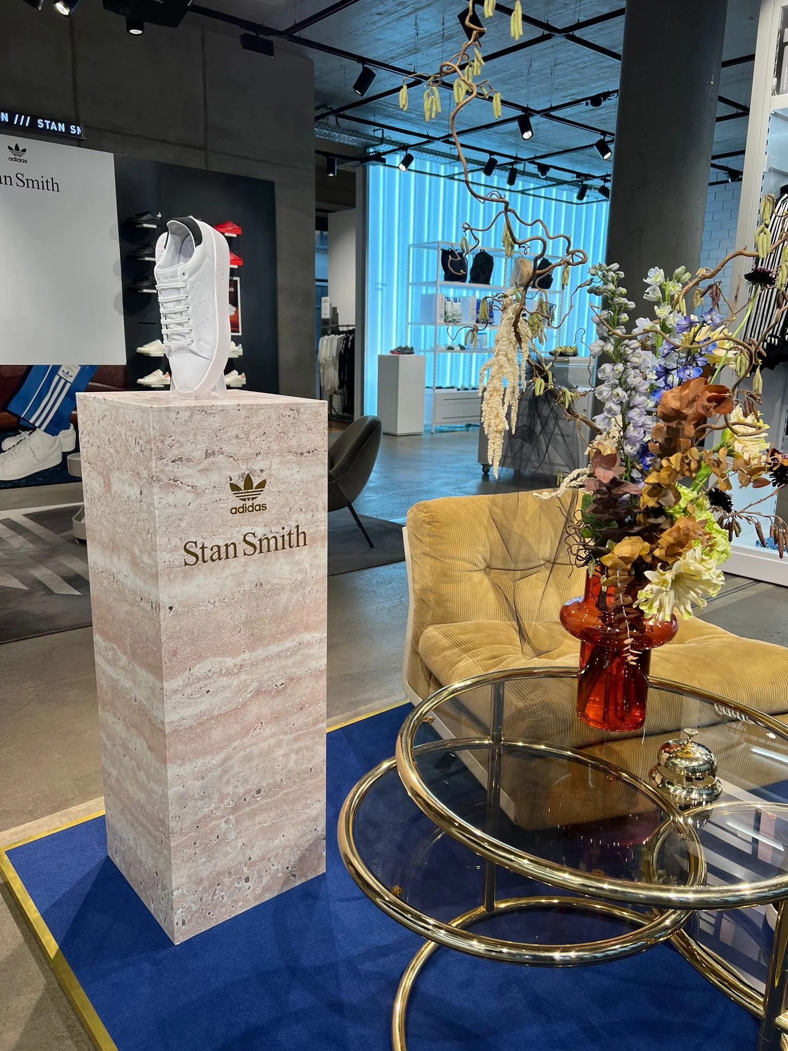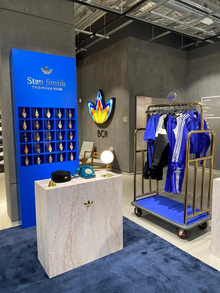 Creating global guidelines for a luxury streetwear product launch required a tiered approach that balanced aspirational design with practical flexibility. Thematic creative reminiscent of retro-cool hotel lobbies combined with campaign content from a launch event at Mies van der Rohe's Barcelona Pavilion, established the visual language and material palette with plush blue carpet anchoring the styling.
