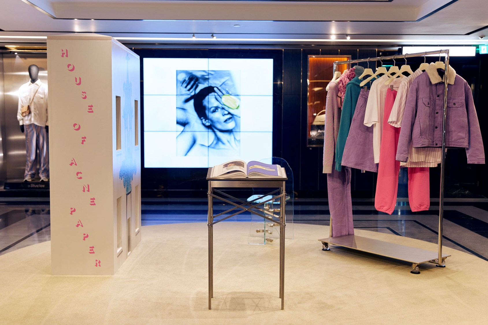 For the launch of Acne Paper 18, We were tasked with transforming Pablo Bronstein's cover artwork of a blue celestial villa into both an impactful display moment and a home for the books themselves.